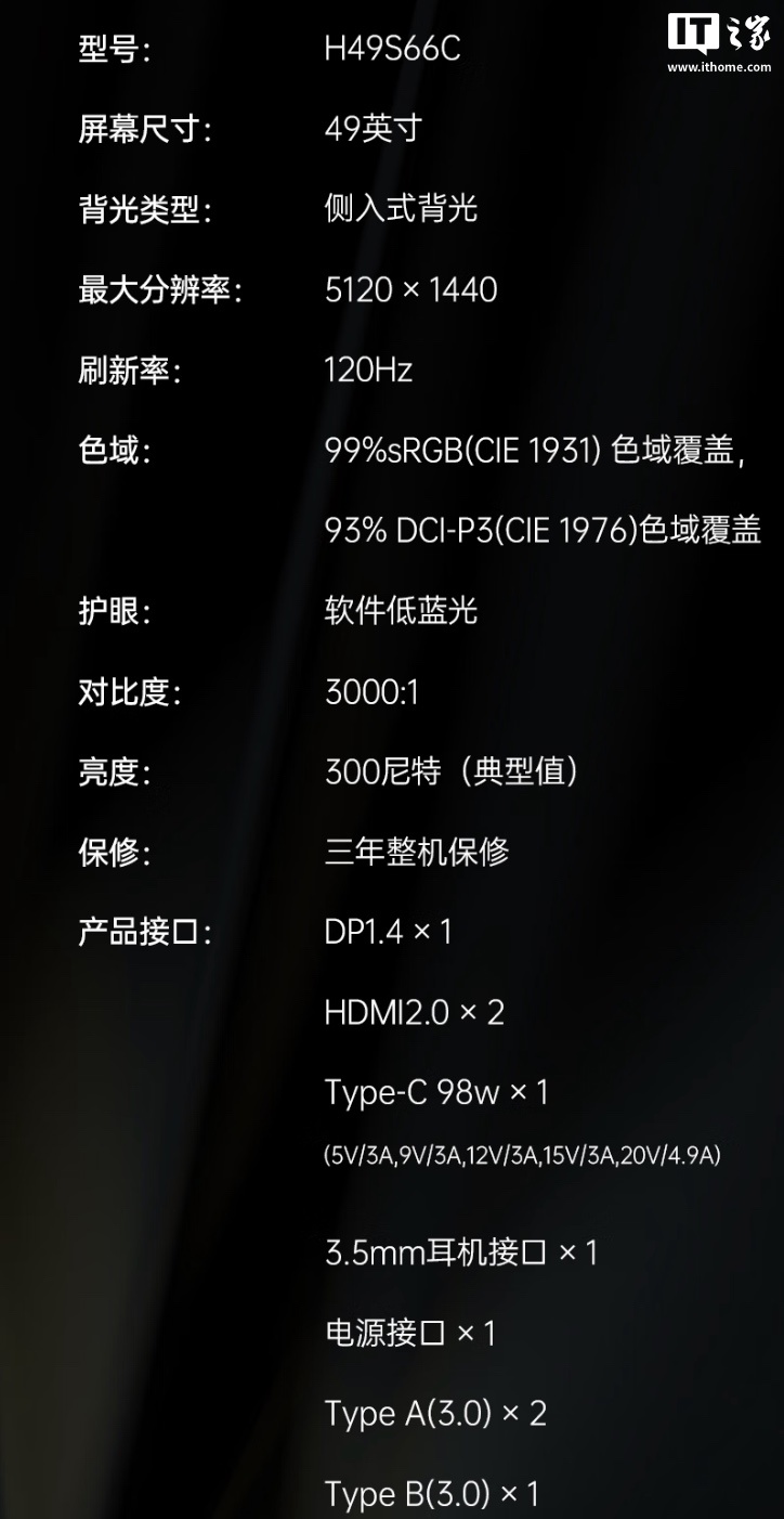 IT之家附显示器参数如下: